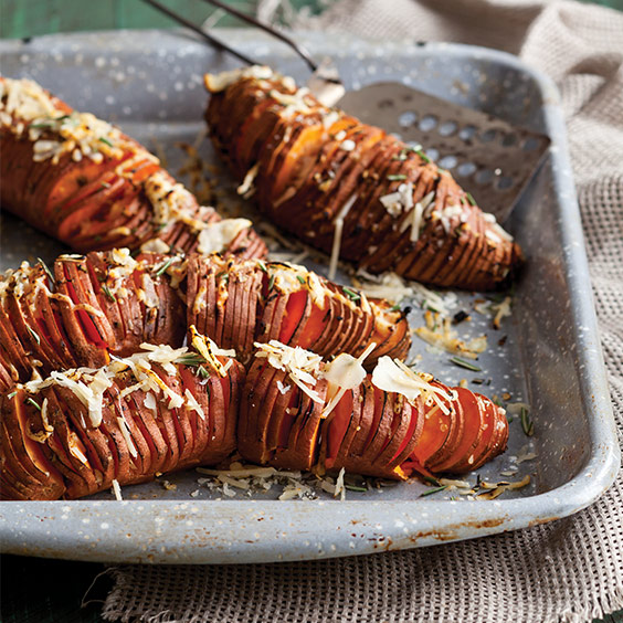 Rosemary-Garlic Hasselback Sweet Potatoes