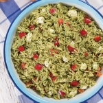 A spicy pesto of arugula and walnuts makes the dressing for this quick and easy orzo pasta salad. It will keep in the refrigerator up to 5 days.