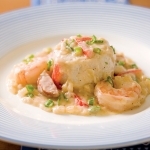 - To serve, run a knife around edges of ramekins, and invert grits on a plate. Spoon shrimp and sausage mixture onto grits, and garnish with green onion, if desired. Serve immediately.