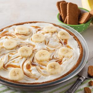 Enjoy a slice or two of this creamy Banana Caramel Cheesecake Pie. It’s the perfect dessert after a delicious meal.