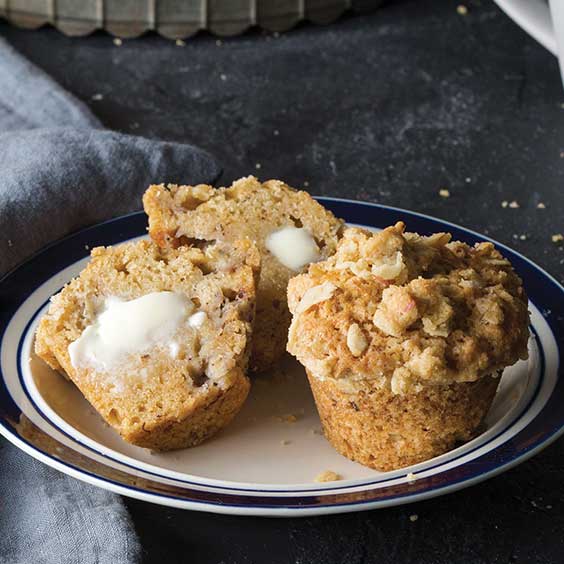 - For muffins: In a large bowl, beat 1⁄2 cup browned butter and sugars with a mixer at medium speed until combined, 3 to 4 minutes, stopping to scrape sides of bowl. Add eggs, one at a time, beating well after each addition.