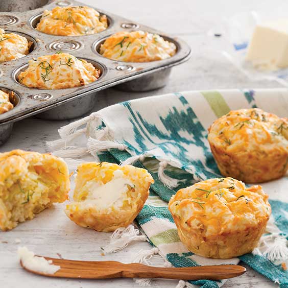 Grated squash adds delightful moisture to these savory muffins that are flavored with fresh dill and sharp Cheddar cheese.