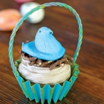 - Gently crumble noodle mixture, and place into meringue nests; top each with a marshmallow chicken.