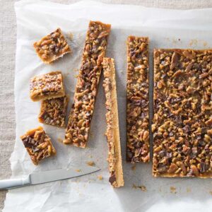 Melty chocolate and a gooey pecan filling make these bars truly delectable.
