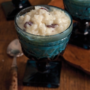 - In a large saucepan, combine milk, coconut milk, rice, sugar, and salt. Bring to a boil, reduce heat, and simmer, stirring often, for 30 minutes or until rice is tender. Stir in dried cherries and almond extract. Pour into 4 small bowls.