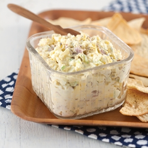 Enjoy the flavor of deviled eggs in a new way–spread over your favorite cracker or pita chips.