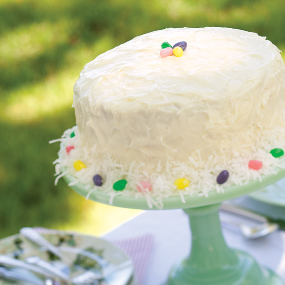 Kids will love helping you decorate this Easter Almond Cake with jelly beans and other candies.