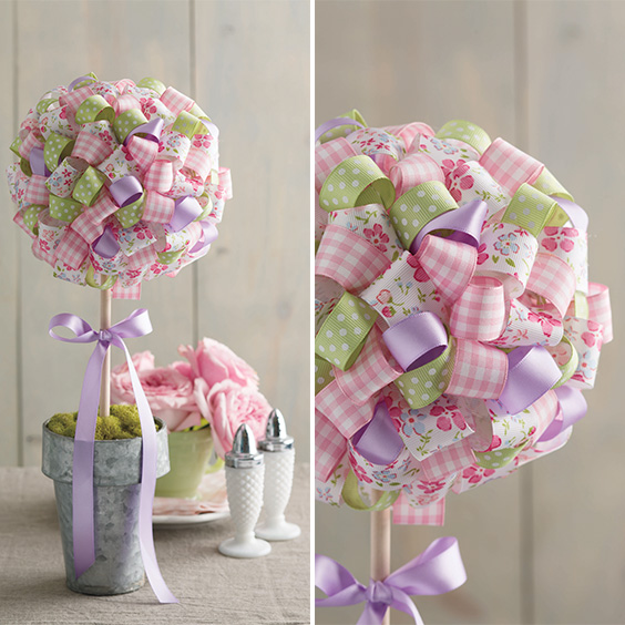 Easter Decorations FacebookPinterestTwitter We transformed simple craft elements into a springtime topiary using 3.5-inch lengths of ribbon and T-pins.