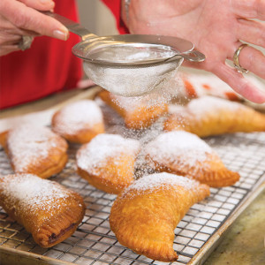 - Fry pies two at a time, turning occasionally, until golden brown, about 5 minutes. Let drain on paper towels. Sift with confectioners’ sugar before serving.