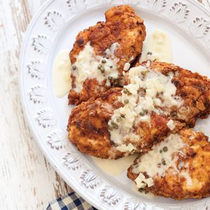 This Fried Chicken Piccata is easy-to-make and delicious with mashed potatoes.