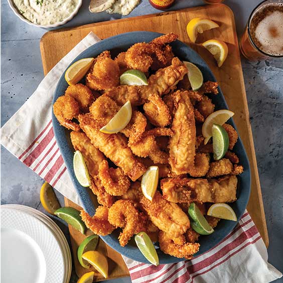 Flavorful snapper and fresh shrimp are fried to perfection with a crunchy panko breading.