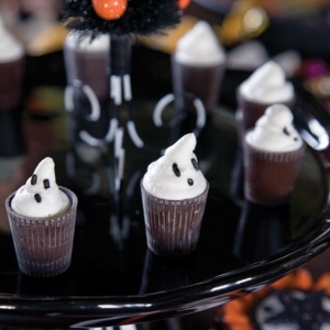 This quick and easy mousse is served in purchased chocolate cups for a kid-friendly Halloween treat.