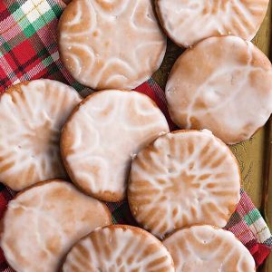 6. In a small bowl, whisk together confectioners’ sugar and 3 tablespoons warm water until smooth. Dip cookies into glaze, and let stand on a wire rack until dry. Store in an airtight container for up to 3 days.