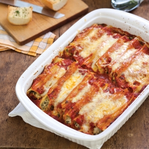 Serve this cheesy manicotti with garlic bread and a simple Italian salad.