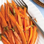 Baby carrots are roasted in a sweet orange glaze.
