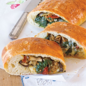 Enjoy these yummy Sausage, Spinach, and Mushroom Calzones with a side of warm marinara sauce.