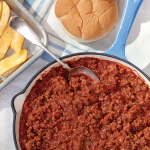 - In a large skillet, cook ground chuck, onion, celery, and garlic over medium heat until beef is browned and crumbly; drain. Return beef mixture to skillet. Add tomato sauce and next 6 ingredients, and bring to a boil over medium-high heat. Reduce heat, and simmer, stirring frequently, for 20 minutes or until very thick. Serve with hamburger buns.