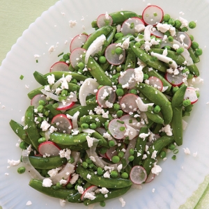 Tender green peas, sweet sugar snap peas, crunchy fennel, and peppery radishes make a flavorful, quick spring salad.