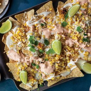 Don’t be afraid to load up on the toppings for these shareable street corn-inspired nachos.