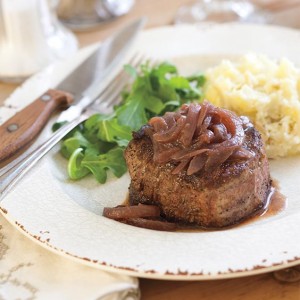 These Vidalia Onion Roasted Steaks are topped with a delicious Caramelized Onion Red Wine Sauce. Serve this appetizing dish with your favorite side salad and mashed potatoes.