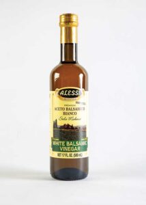This type of vinegar is processed in the same way as regular balsamic. However, its light color keeps it from “muddying” recipes, contributing brightness both in flavor and color. It’s a great option to turn to when cooking up veggie-forward dishes, marinades, and more.