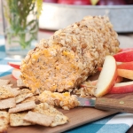 - In a large bowl, beat Cheddar and next 5 ingredients with a mixer at medium speed until creamy. Shape mixture into an 8-inch log, and roll in walnuts to coat. Cover and refrigerate for at least 2 hours before serving or for up to 3 days. Serve with crackers and apples.