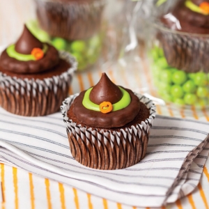 - Pipe a small amount of icing in center of each cupcake, and place assembled witch hat on top of cupcake. Let stand for 15 to 20 minutes for icing to set.